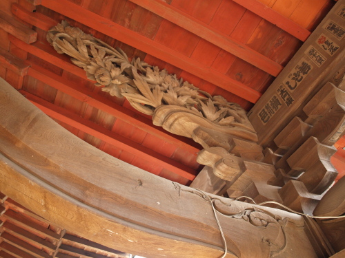虹梁は唐草の彫刻。時々凄いのを見ますが、ここはとてもシンプル。