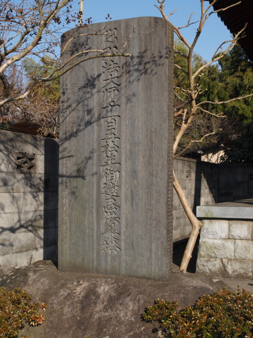 境内に立つ石碑。弘法大師千百五十年御遠忌供養塔。