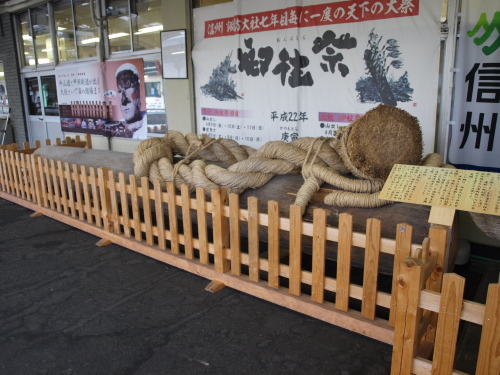平成22年の「御柱休め」で、役割を終えた「秋宮三」の柱を、