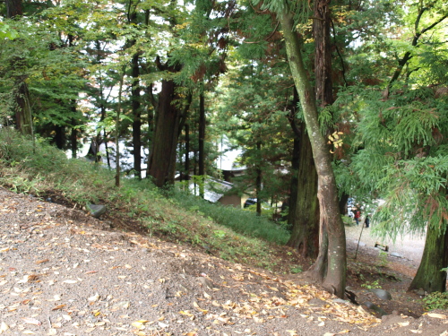 九十九折りの道。ここを下れば春宮までもうすぐです。