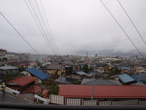 下諏訪の町並みと諏訪湖を眺めながら、中山道をひたすらてくてく。