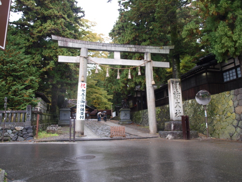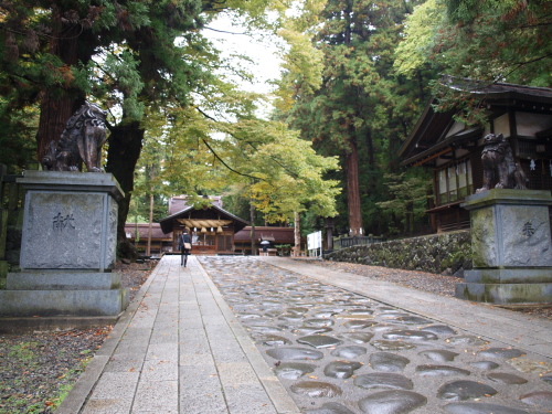 秋宮より境内の幅が狭いのか、狛犬の配置が違うのか・・・