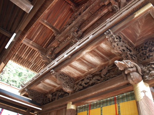 これだけでも結構な迫力がるのに、軒唐破風(のきからはふ)からのぞく組物が圧倒する。