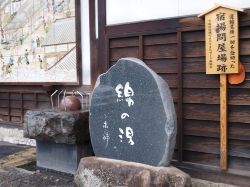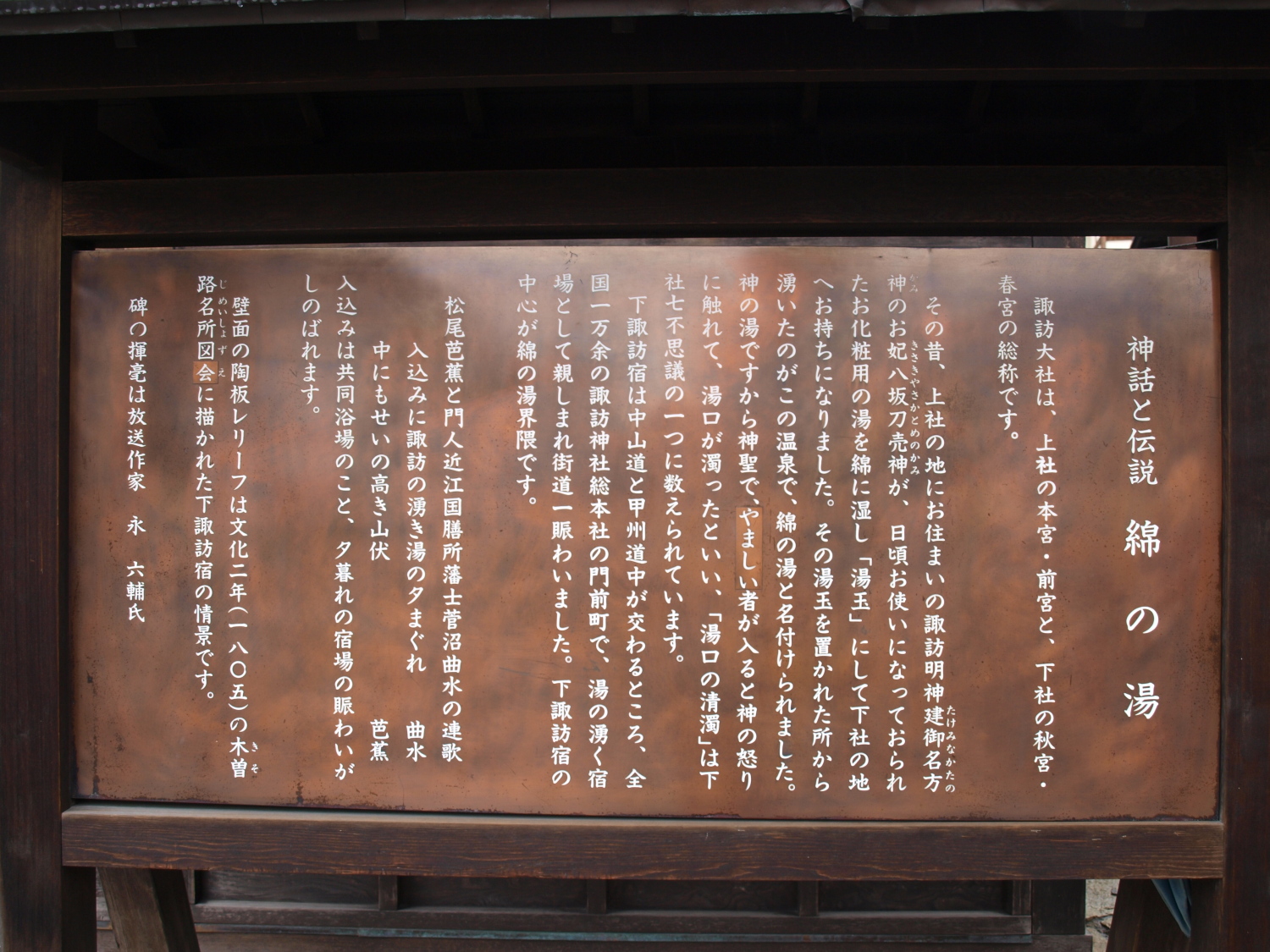 宿場問屋場あとにある温泉。「伝説と神話」というタイトルで説明看板がありました。