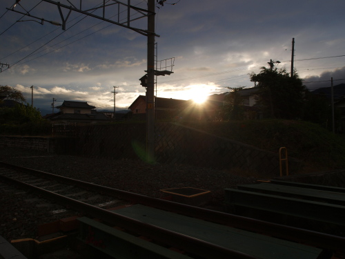 雲が切れて、夕日が差す。