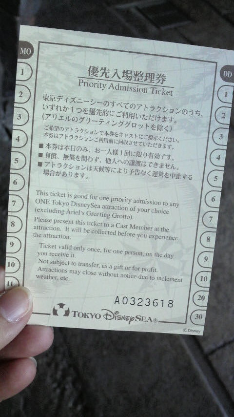 こういう場合、他の乗り物に優先的に(といっても、ファストパスと同じ扱い)乗せてくれる