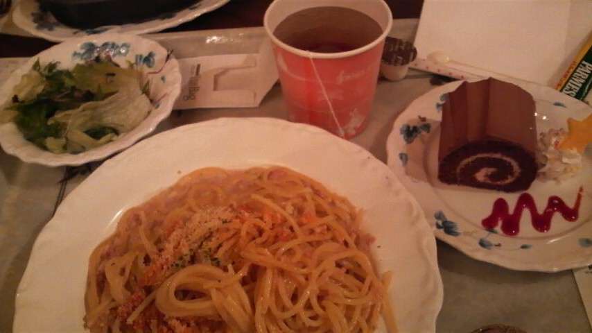 写真を取る前に手を付けたため、パスタが乱れてる…