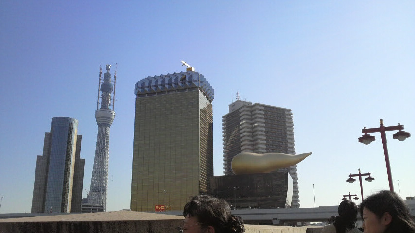 吾妻橋から見た某ビール会社とスカイツリー。