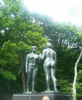 十和田湖畔に佇む高村光太郎作「乙女の像」。