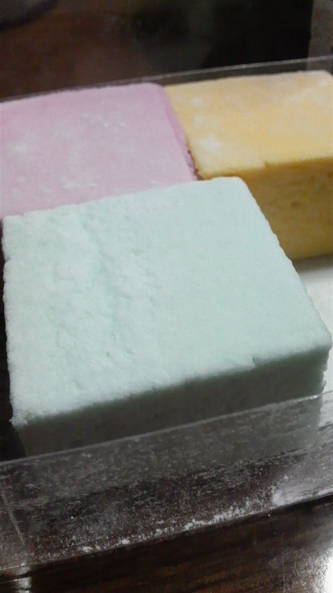 写真のお菓子はイチゴ味のチョコレートに、お米のパフが入っていました。