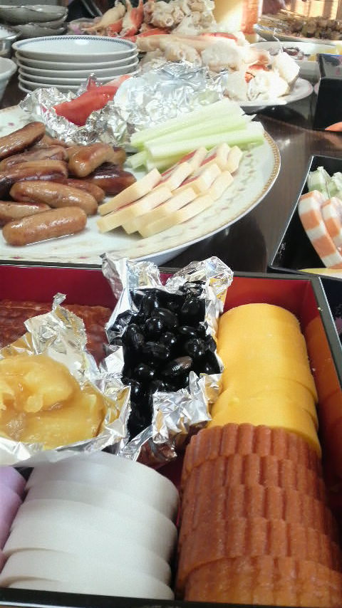 各家持ち寄りのようになっていて、オードブル的なものが並ぶなど和洋折衷。